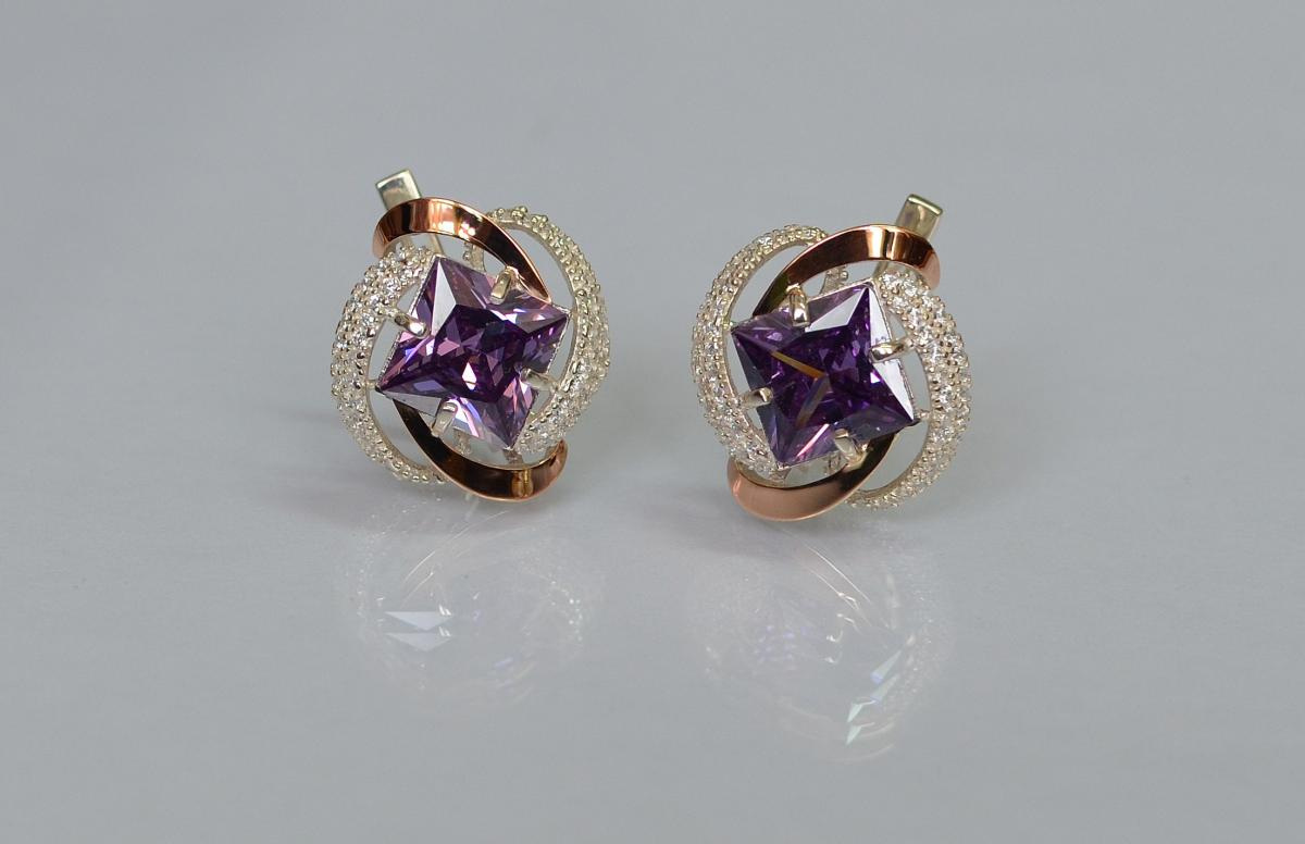 Опис Серебряные серьги Sil с золотыми накладками 130s-4 Аметист (Sil-735)