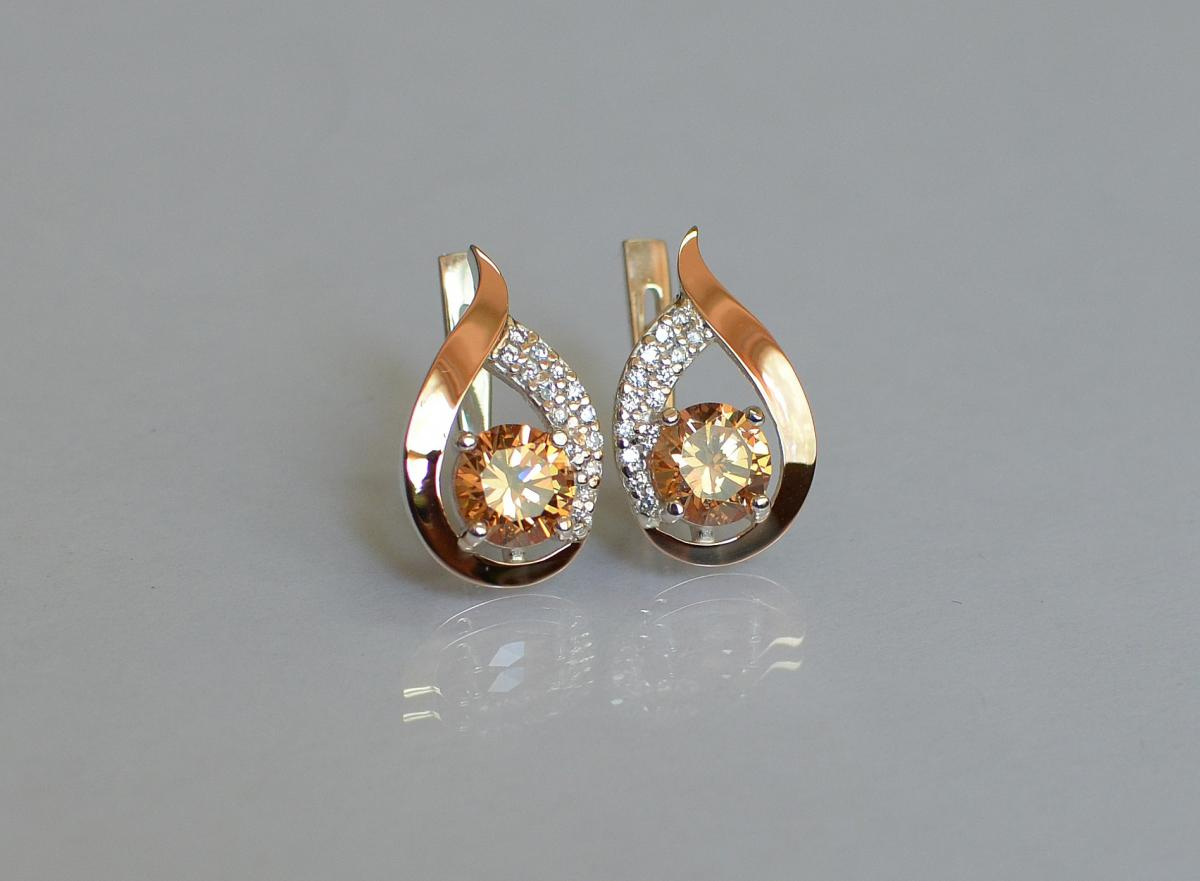 Опис Серебряные серьги Sil с золотыми накладками 144s-2 Шампань (Sil-1157)