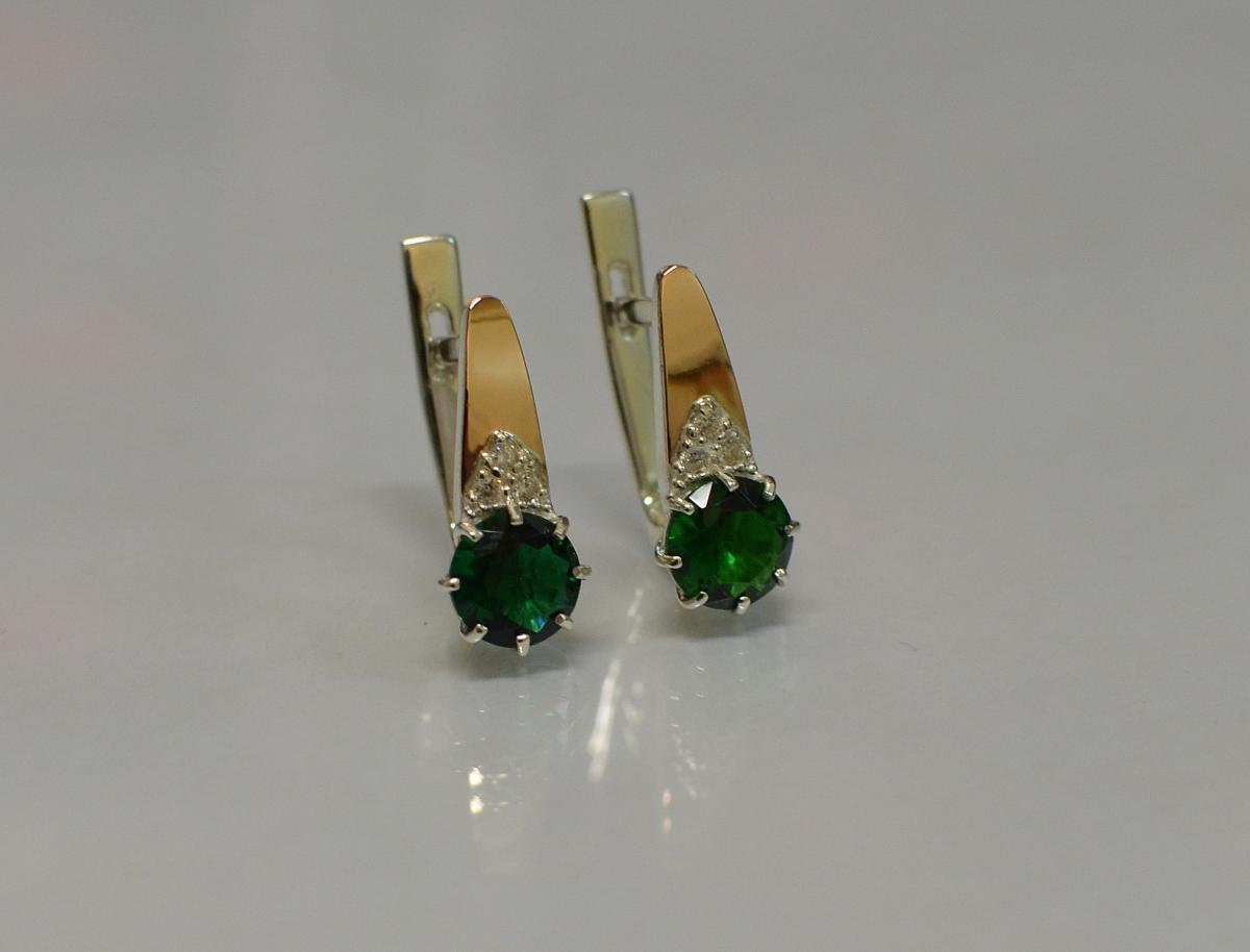 Серебряные серьги Sil с золотыми вставками 124s-5 Зеленый (Sil-778)
