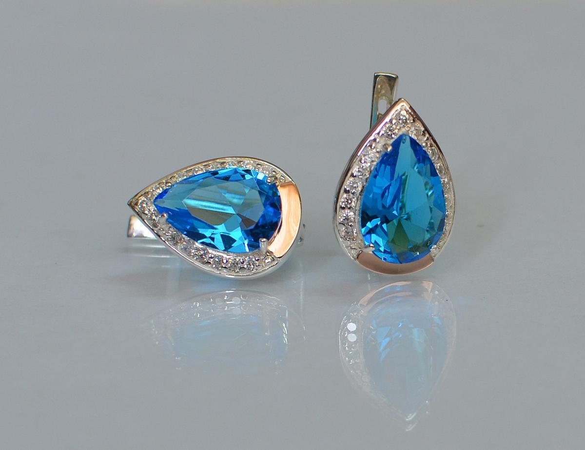 Опис Серебряные серьги Sil с золотыми пластинами 038s2-7 Аквамарин (Sil-1211)