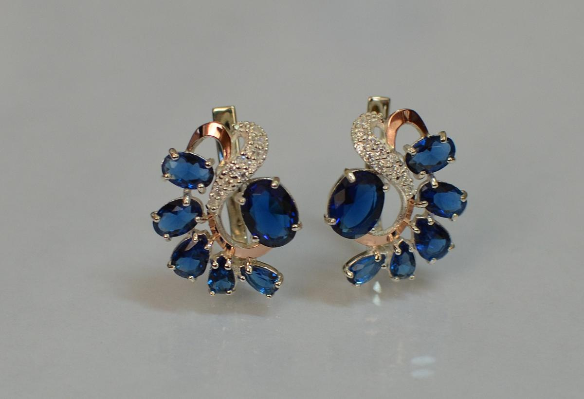 Серебряные серьги Sil с золотыми накладками 130s-15 Танзанит (Sil-746)