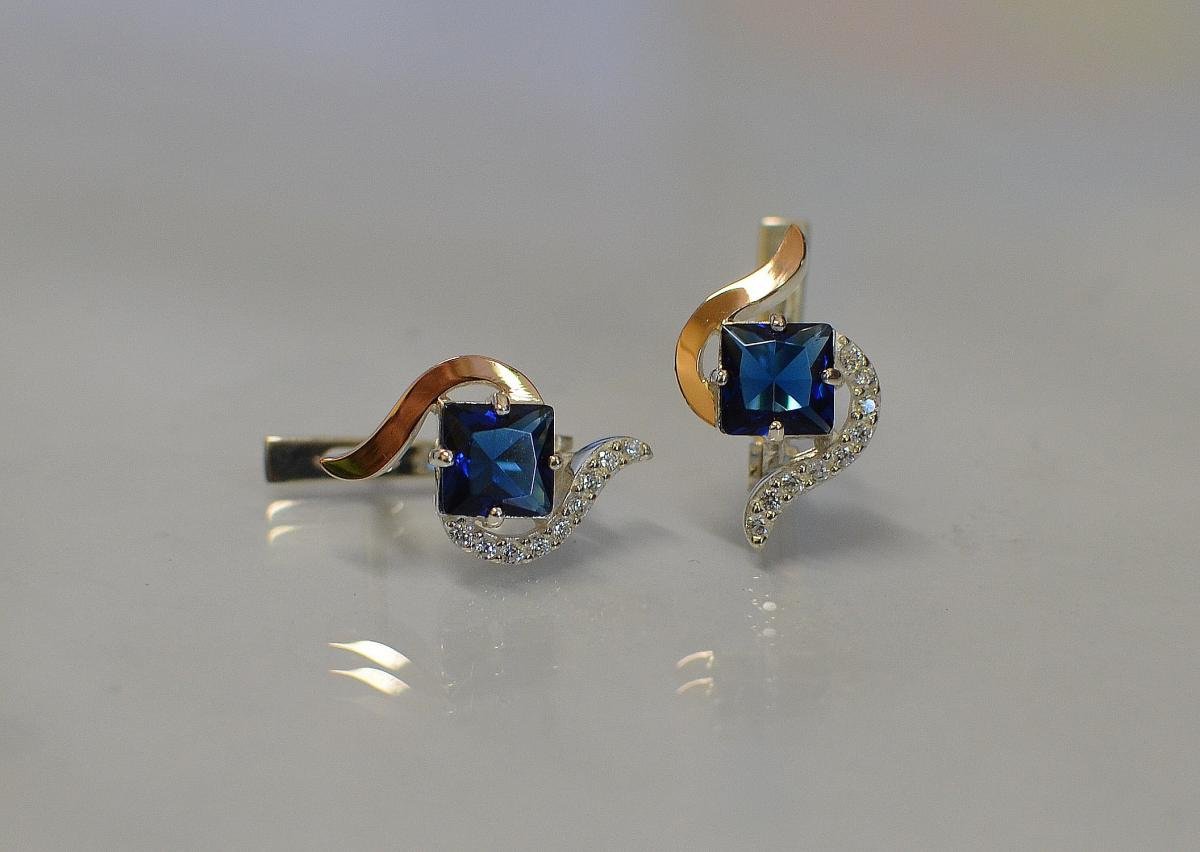 Серебряные серьги Sil с золотыми накладками 118s-11 Голубой (Sil-827)