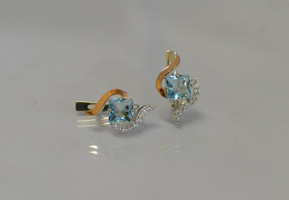 Опис Серебряные серьги Sil с золотыми накладками 118s-11 Голубой (Sil-827)