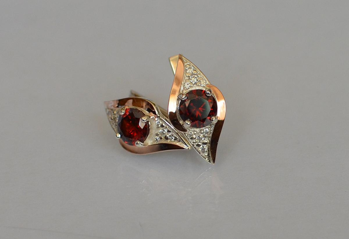 Серебряные серьги Sil с золотыми вставками 145s-1 Красный (Sil-1013)