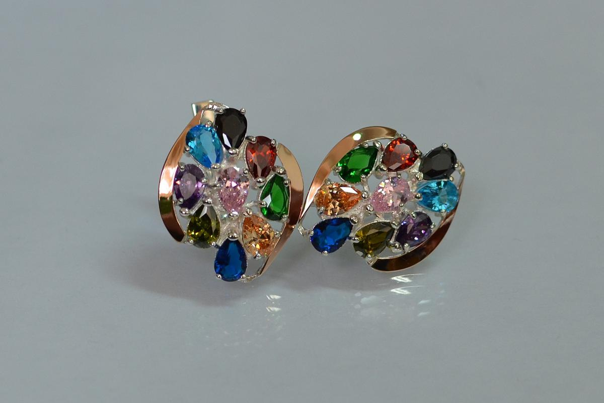Серьги серебренные Sil Myau с золотыми вставками 082s-4 Розовый (Sil-689)