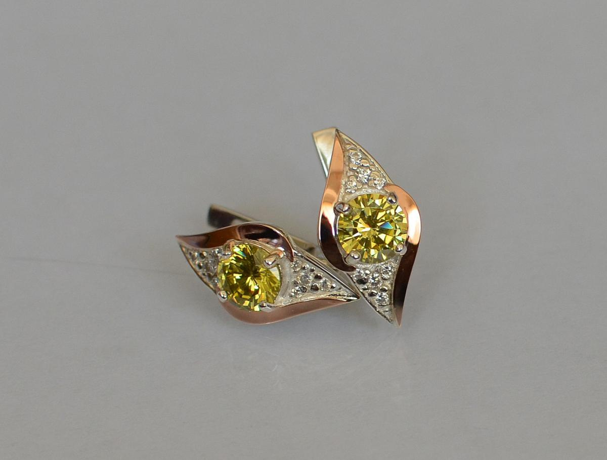 Серебряные серьги Sil с золотыми вставками 145s-6 Шампань (Sil-1018)