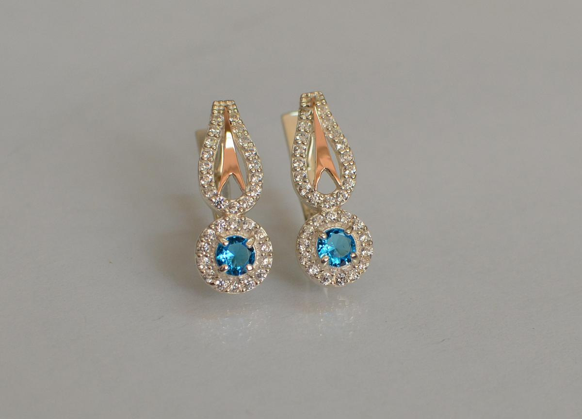 Серебряные серьги Sil с золотыми пластинами 135s-15 Розовый (Sil-1186)