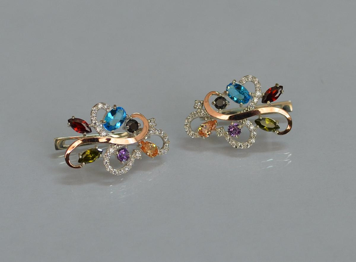 Серебряные серьги Sil с золотыми вставками 151s-8 Фиолет (Sil-1082)