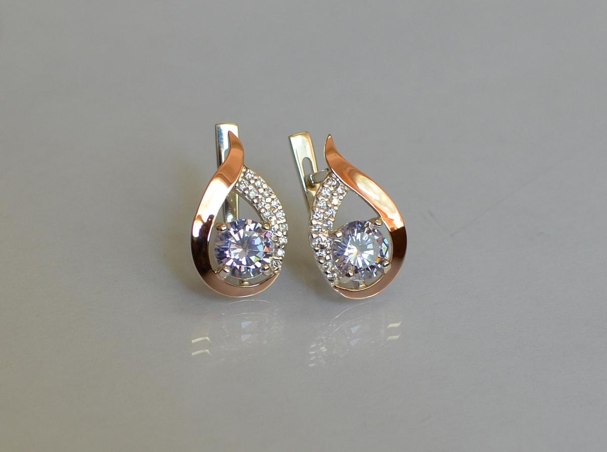Серебряные серьги Sil с золотыми накладками 144s-15 Прозрачный (Sil-1170)