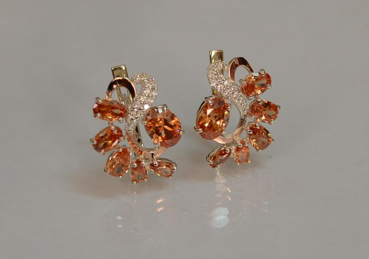 Серебряные серьги Sil с золотыми накладками 153s-2 Прозрачный (Sil-1046)