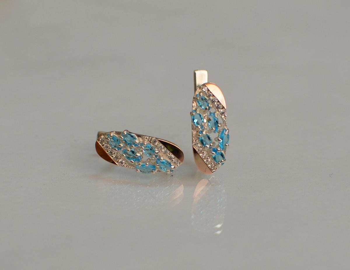 Серебряные серьги Sil с золотыми пластинами 116s-6 Фиолет (Sil-1256)