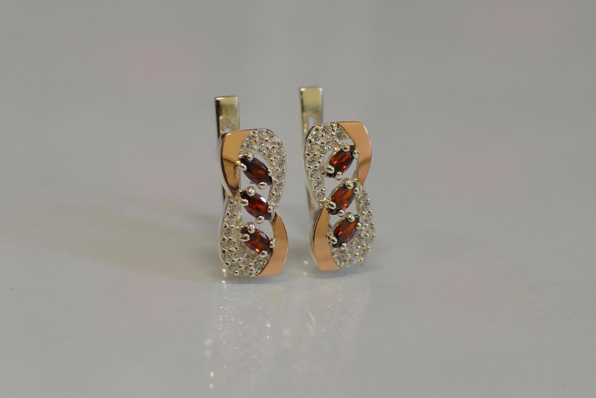 Серебряные серьги Sil с золотыми пластинами 120s-10 Розовый (Sil-808)