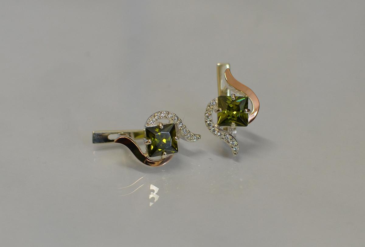 Серебряные серьги Sil с золотыми накладками 118s-9 Розовый (Sil-825)