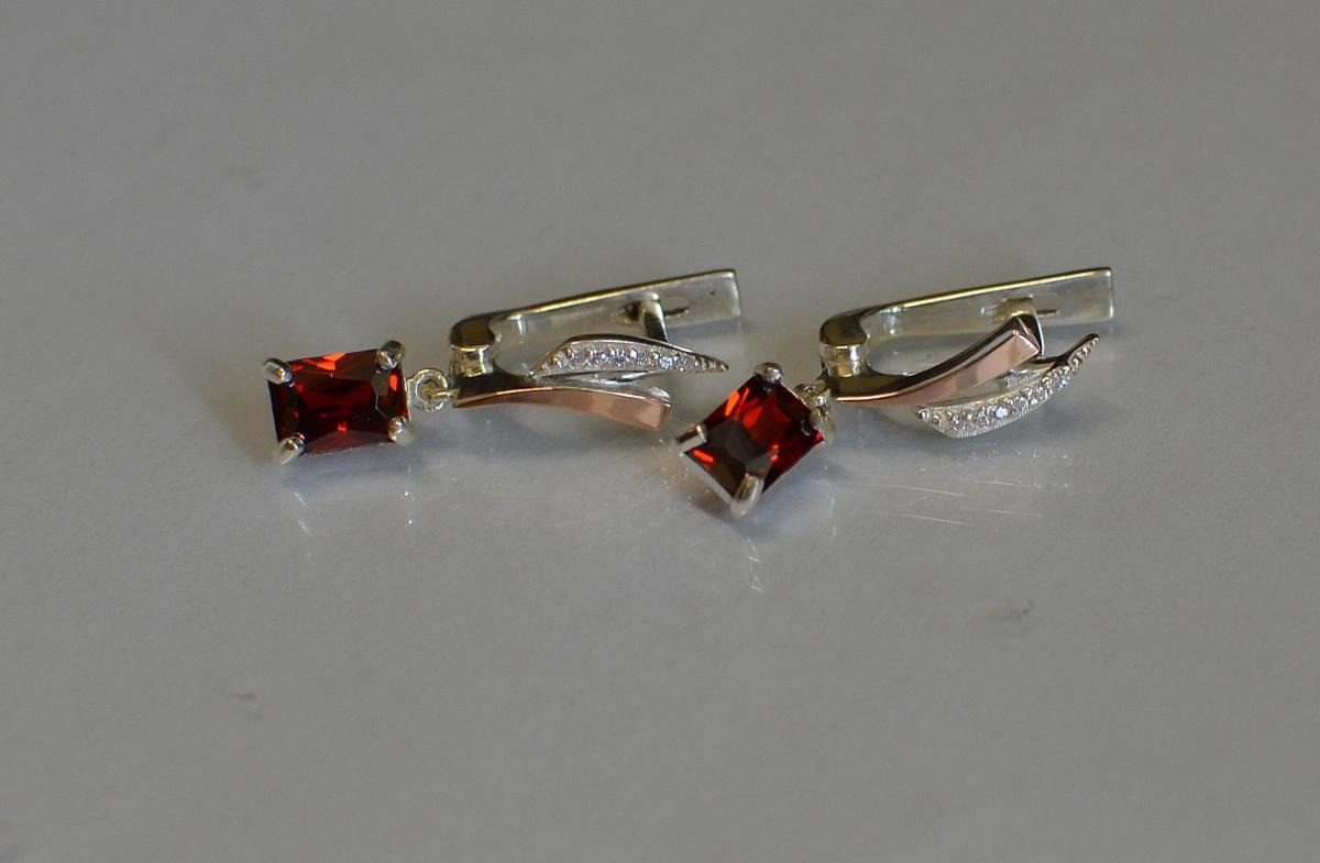 Серьги серебряные Sil с золотыми накладками и фианитами 100s-11 Шампань (Sil-1011)