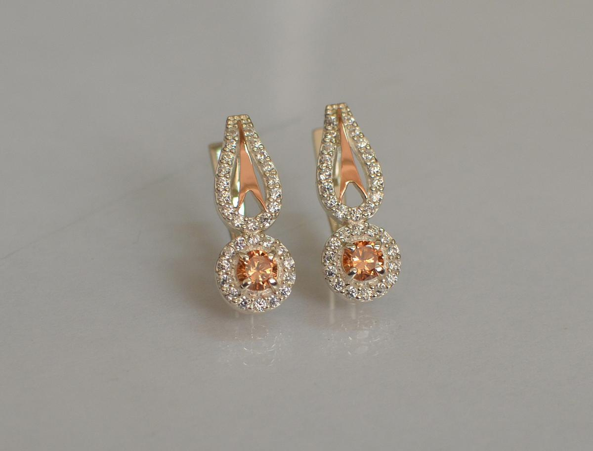 Серебряные серьги Sil с золотыми пластинами 135s-15 Розовый (Sil-1186)