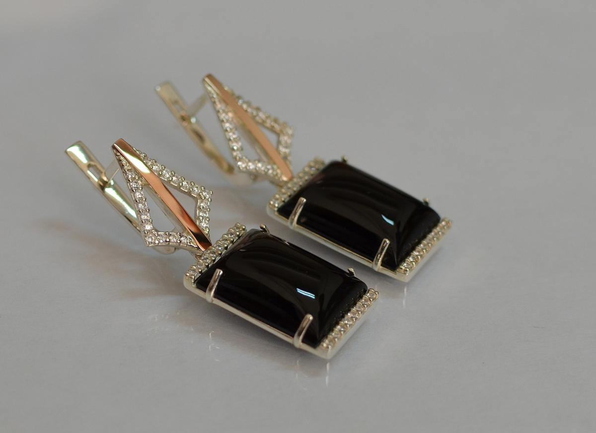 Опис Серебряные серьги с кабашонами 146s-3 Черный (Sil-1148)