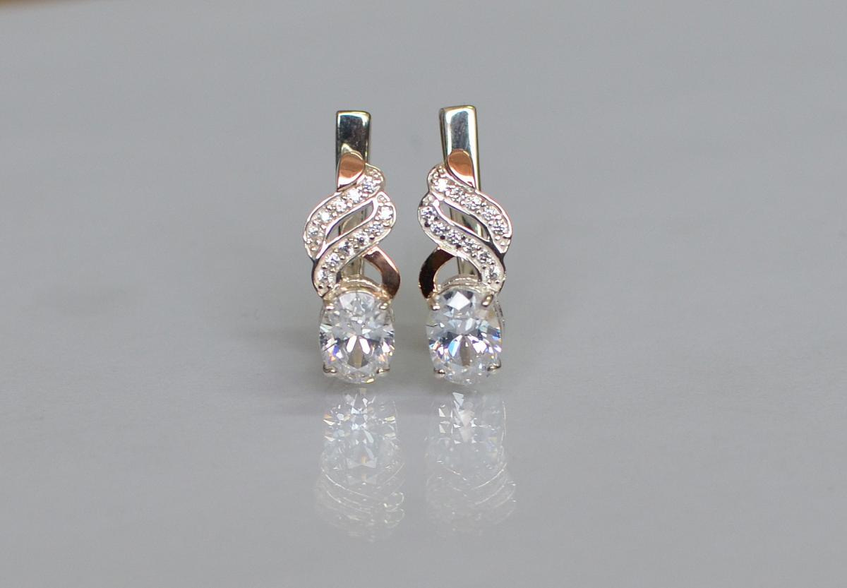 Серебряные серьги Sil с золотыми накладками 117s-1 Розовый (Sil-759)