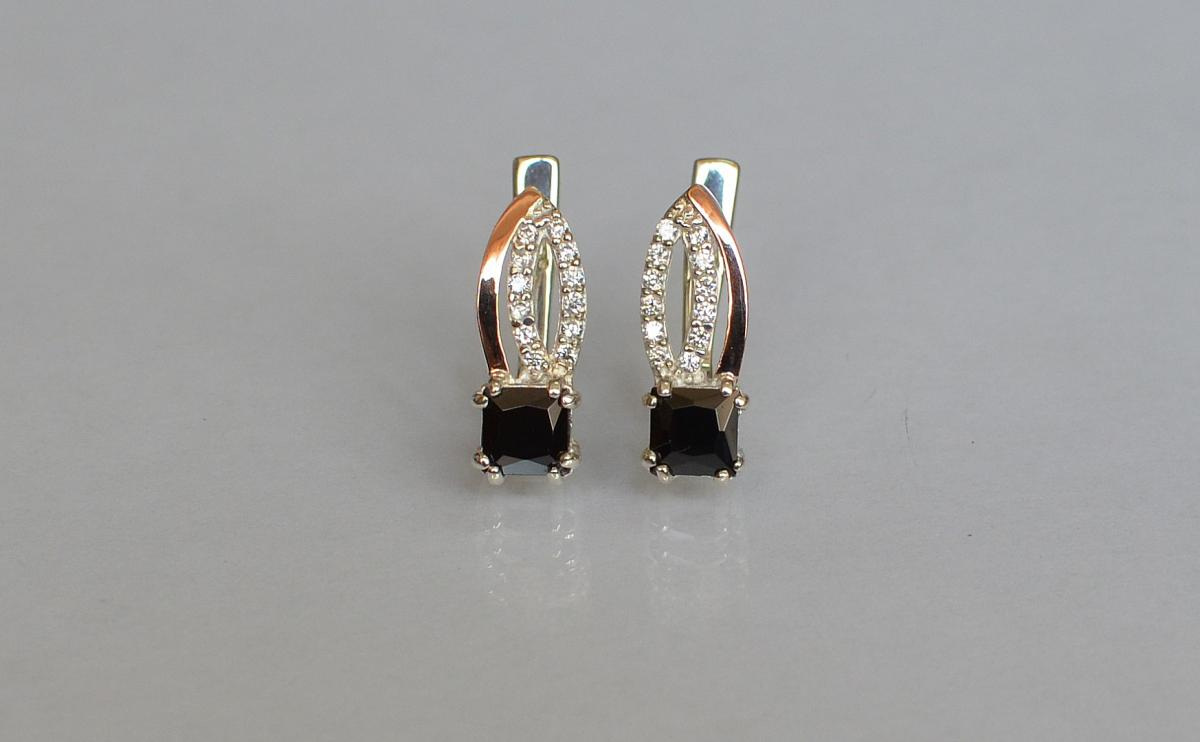 Серебряные серьги Sil с золотыми вставками 136s-16 Коричневый (Sil-1250)