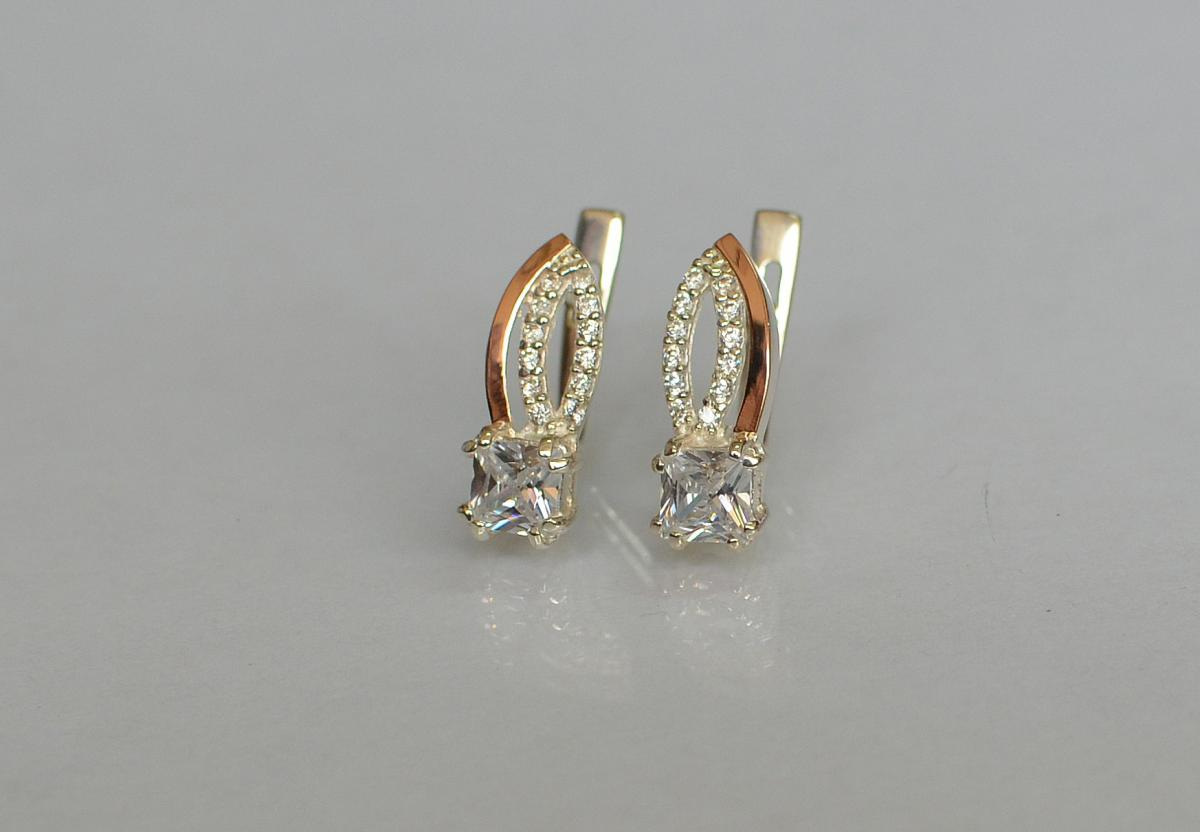 Серебряные серьги Sil с золотыми вставками 136s-4 Шампань (Sil-1238)