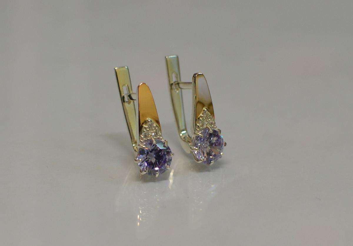Серебряные серьги Sil с золотыми вставками 124s-1 Прозрачный (Sil-774)