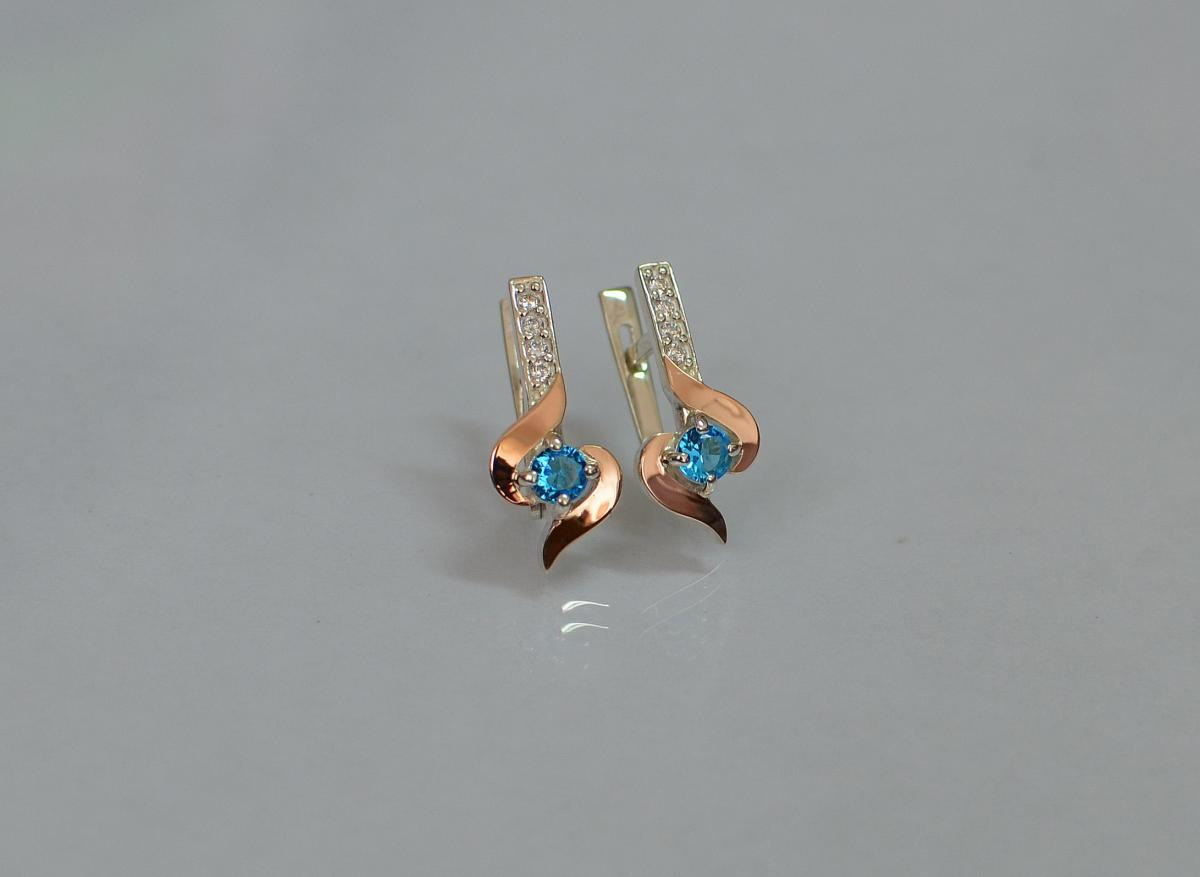 Опис Серебряные серьги Sil с золотыми вставками 142s-17 Аквамарин (Sil-1144)