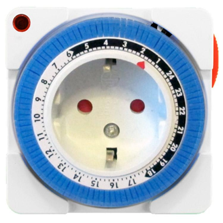 Механический таймер-розетка модели LM663 (старое название LM671) от производителя Lemanso применяется для автономного включения или выключения различных электроприборов с мощностью до 3.5Вт. Конструкция LM663 и основные параметры Таймер квадратной формы имеет компактные размеры 75х75мм с толщиной 60 мм. На задней части есть евро вилка, а на передней части находится евро розетка, а вокруг нее расположен циферблат с ламелями с минимальным шагом 15 минут. Работает от сети 220-240В. Степень пыле-влагозащиты – IP20, прибор подойдет для работы только в середине помещения. На корпусе есть индикатор, если он светится красным, это значит, что таймер в рабочем состоянии. Как работает механический таймер Настройка проходит несколько этапов: - Установка актуального времени на таймере. На циферблате есть небольшая стрелка красного цвета. Текущее время должно совпадать со стрелкой, для этого поворачиваем механизм по часовой стрелке до требуемого времени. - Настройка программы. В таймере можно задать 48 программ включения и выключения электроприбора на протяжении суток. Для этого нажимаем на ламели требуемого времени. К примеру – текущее время 15:00. Нам нужно включить электроприбор в 15:30 на полчаса. Для этого зажимаем 2 ламели в промежутке от 15:30 до 16:00. Когда текущее время дойдет до отметки 15:30 таймер включится, загорится индикатор работы, а через полчаса выключится. Более подробную настройку можно увидеть в нашем видео обзоре. Купить таймер механический Приобрести таймера от компании Lemanso выгоднее всего в нашем интернет-магазине RES. Таймеры поставляются к нам напрямую от производителя, поэтому цена доступна каждому. Все приборы имеют документы и гарантийные талоны со сроком 1 год. Таймер суточный механический LM663 (LM671) Lemanso видео