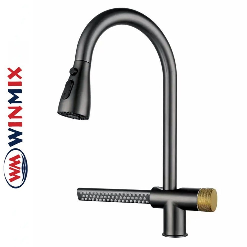Змішувач для кухні з висувною лійкою FOZ-014 GRAPHITE з водоспадом, нержавіюча сталь, Winmix Польща