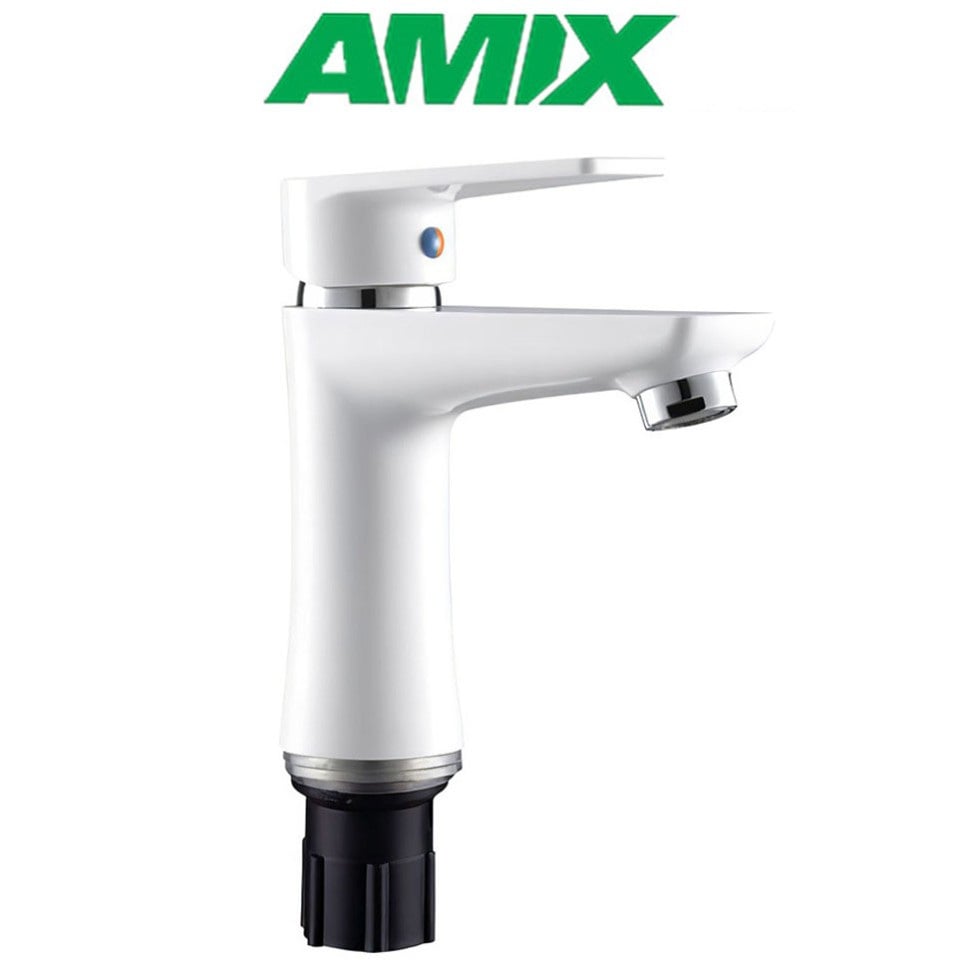 Змішувач для умивальника из термопластика AMIX CEZAR-001 HIGH SET White (з підводом), Білий