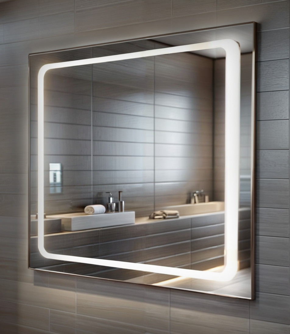 Дзеркало: високоякісне скло виробництва AGC Belgium гарантує чітке та яскраве відображення. Дзеркальне полотно має ступінь захисту IP44, що дозволяє використовувати виріб у ванних кімнатах.
