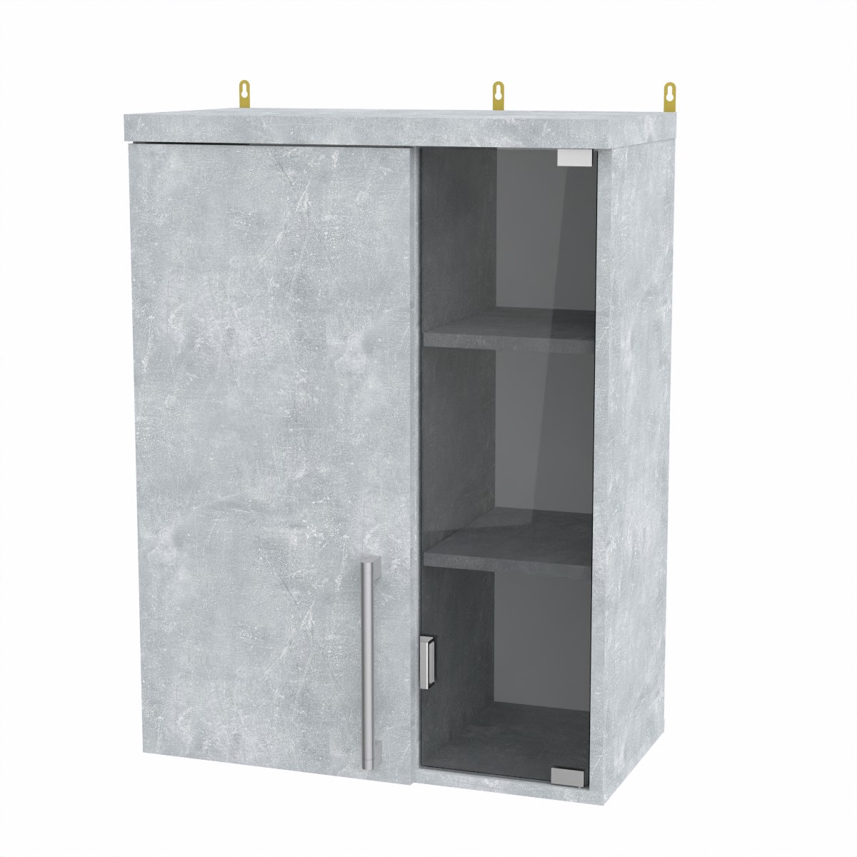 Тумба Навісна-1 МГ-2 Виконана з ламінованого ДСП, товщиною 16 мм. Така тумба містить одне закрите відділення з полицею та дві полиці за скляними дверцятами, на яких можна зберігати різноманітні необхідні речі та предмети декору. Досить містка модель, яка не займе багато місця в кімнаті, і стане зручним предметом інтер'єру.