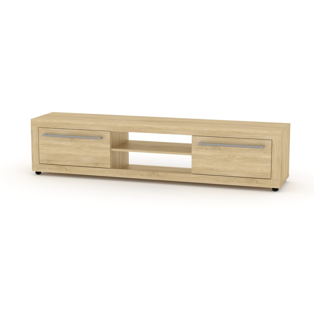 Тумба під ТВ МГ-1 виготовлена з ламінованого ДСП завтовшки 16 мм. Зручна тумба в сучасному стилі, яка включає два місткі ящики і дві відкриті ніші, які грамотно розмістять техніку, особисті речі та інші предмети. Така модель стане доповненням в інтер'єрі і підкреслить його індивідуальні особливості. p>Меблі доставляють у розібраному вигляді у фабричній упаковці. У комплекті фурнітура для збирання, схема виробу. Отвори для складання просвердлені