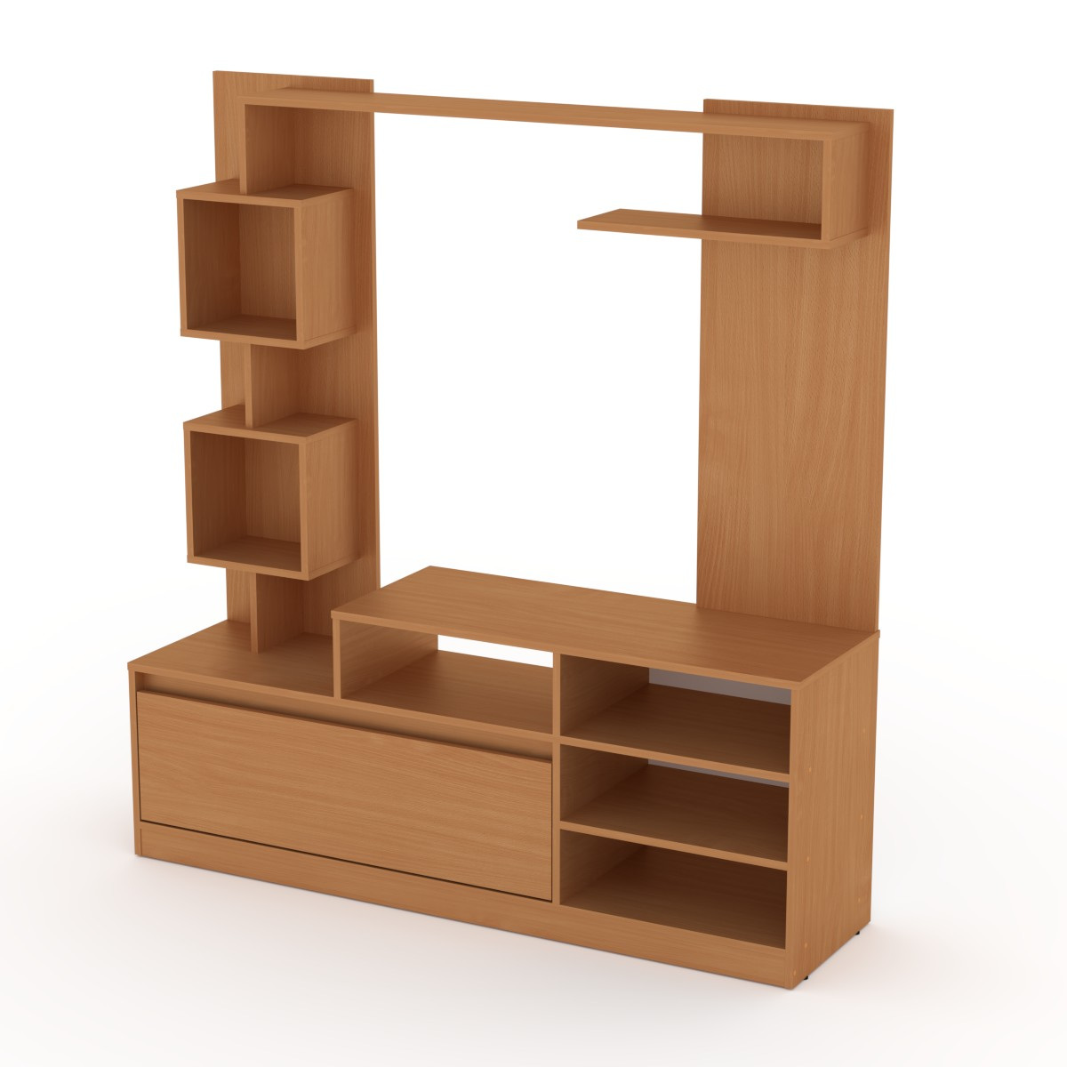 Стінка для вітальні Мілана виготовлена з ламінованого ДСП товщиною 16 мм. Така конструкція має наступну комплектацію: ніша під телевізор, тумба з висувною скринькою та відкритими нішами, надставка з безліччю відкритих полиць для книг, сувенірів, сімейних фотографій та інших красивих дрібниць. Лаконічна модель, яка не захаращує простір кімнати, і розмістить велику кількість необхідних предметів.