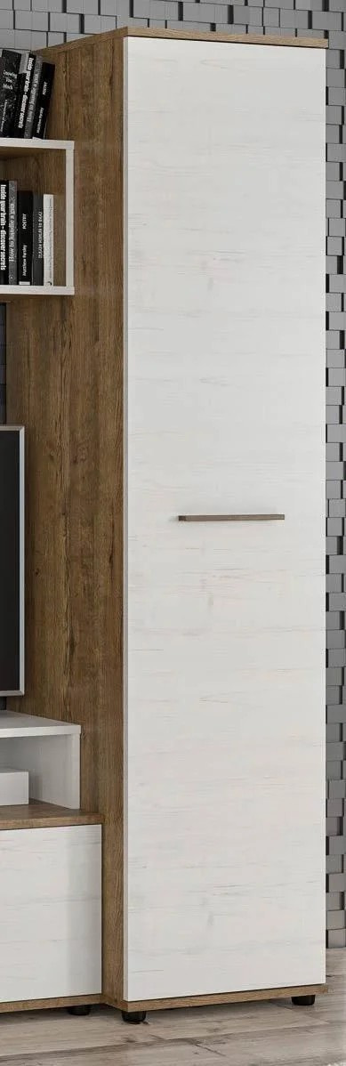 Пенал Феррара виконаний з ДСП, товщиною 16 мм. Пенал містить одне закрите відділення з дверцятами, яке вміщує чотири полиці. Практичний та функціональний предмет меблів, який дозволить зберігати найнеобхідніші речі та предмети домашнього користування.