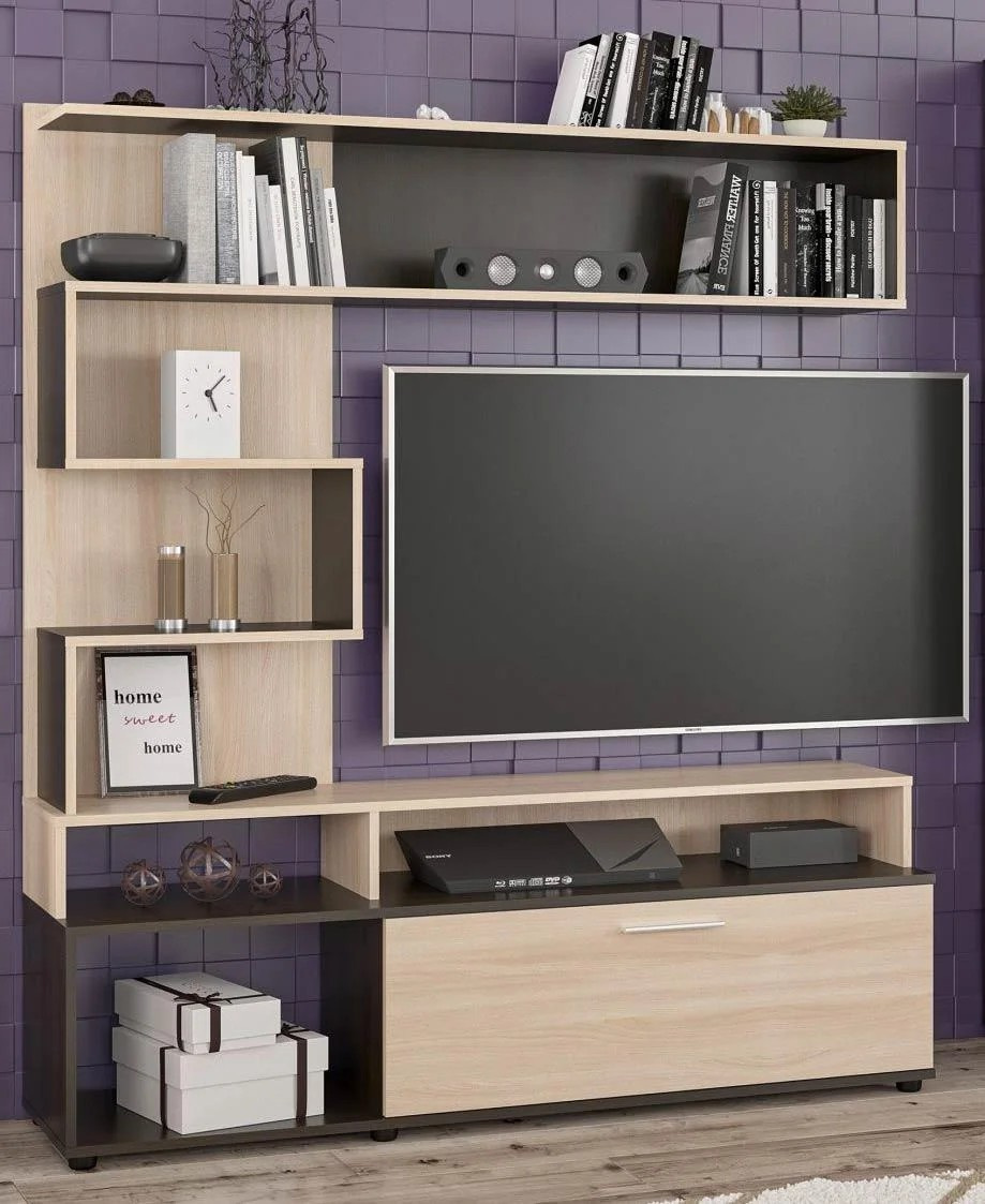 Стінка для вітальні Феррара виготовлена із ДСП товщиною 16 мм. Компактна стінка яка не захаращує кімнату і складається з тумби під телевізор з відкидними дверцятами та безліччю відкритих полиць, які розмістять декор, книги, сімейні цінності та інші дрібниці. Така конструкція зробить кімнату максимально гармонійною та комфортною. Подібний гарнітур можна доповнити пеналом із тієї ж серії.