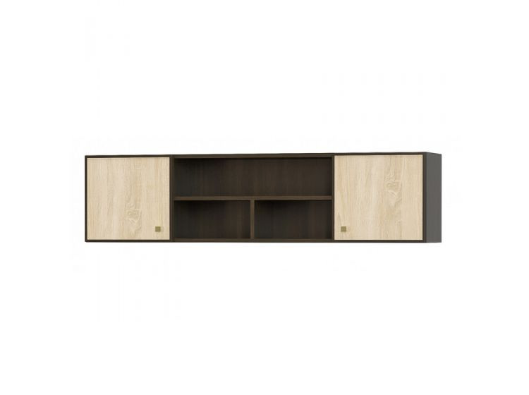 Тумба навісна Фантазія 2Д виконана із ДСП, товщиною 16 мм. Тумба складається з трьох відкритих ніш та двох закритих відділень. Вона розмістить всі необхідні речі і органічно впишеться в інтер'єр, надаючи стіні абсолютно нового вигляду.