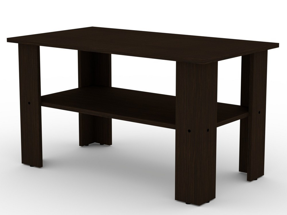 Стіл журнальний виготовлений з ламінованого ДСП, завтовшки 16 мм, кромка ПВХ 0,5 мм. Сучасна комбінація кольорів дозволить створити будь-який інтер'єр Вашої кімнати. Стіл з додатковою полицею стане зручним доповненням у вітальні, дитячій або на веранді.