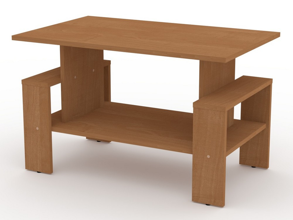 Стіл журнальний виготовлений з ламінованого ДСП, завтовшки 16 мм, кромка ПВХ 0,5 мм. Сучасна комбінація кольорів дозволить створити будь-який інтер'єр Вашої кімнати. Оригінальний дизайн столу доповнить будь-який інтер'єр, а додаткові полиці допоможуть розмістити предмети декору та гаджети.