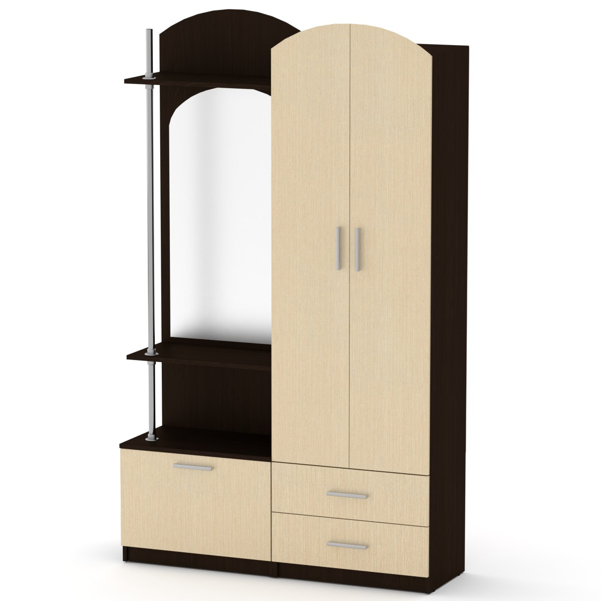Корпус та фасади виготовлені з ДСП. Шафа для передпокою незамінна для зберігання одягу та дрібниць.