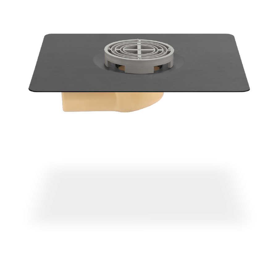 Балконная воронка SitaMini, угловая, изготовлена из полиуретана, номинальных размеров DN 50 или DN 70, с ПВХ фартуком (300 мм х 300 мм).;Балконная воронка SitaMini, угловая, изготовлена из полиуретана, номинальных размеров DN 50 или DN 70, с ПВХ фартуком (300 мм х 300 мм).