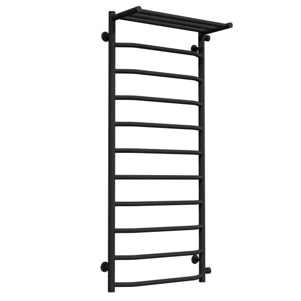 Полотенцесушитель водяной Deffi Трапеция с полкой П11 1200х530мм, нержавеющая сталь, черный