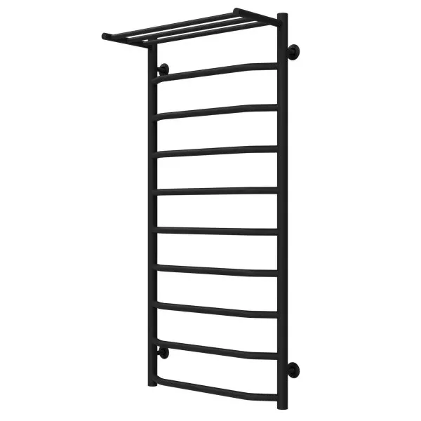 Полотенцесушитель водяной Deffi Трапеция с полкой П10 1100х530мм, нержавеющая сталь, черный
