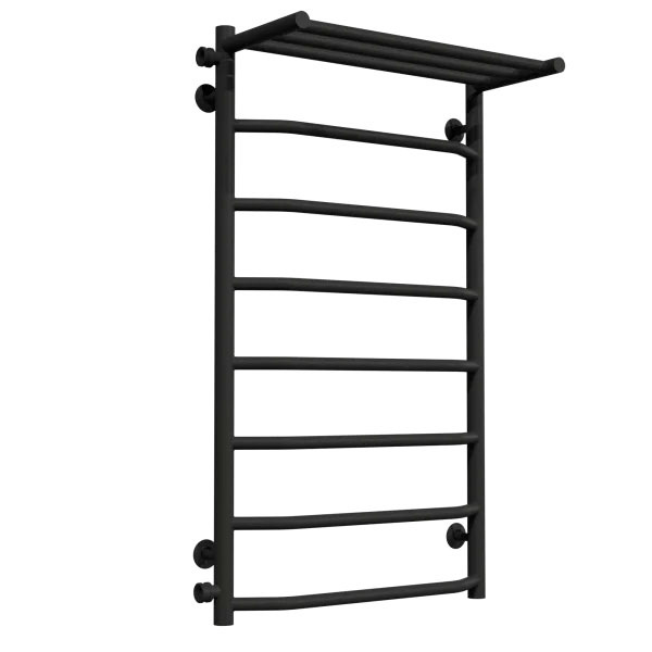 Полотенцесушитель водяной Deffi Трапеция с полкой П8 900х530мм, нержавеющая сталь, черный