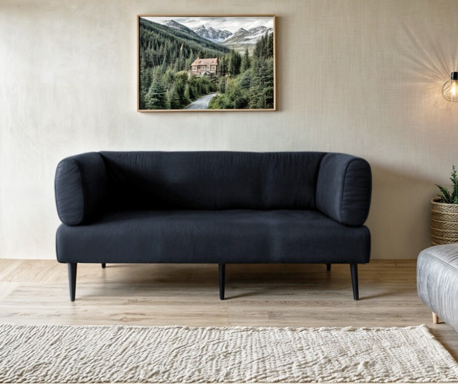 Диван із підлокітниками Tobi Sho Бенно-1 офісний з конусною ногою 2000х720х750 велюр Emilia 97 GRAPHITE
