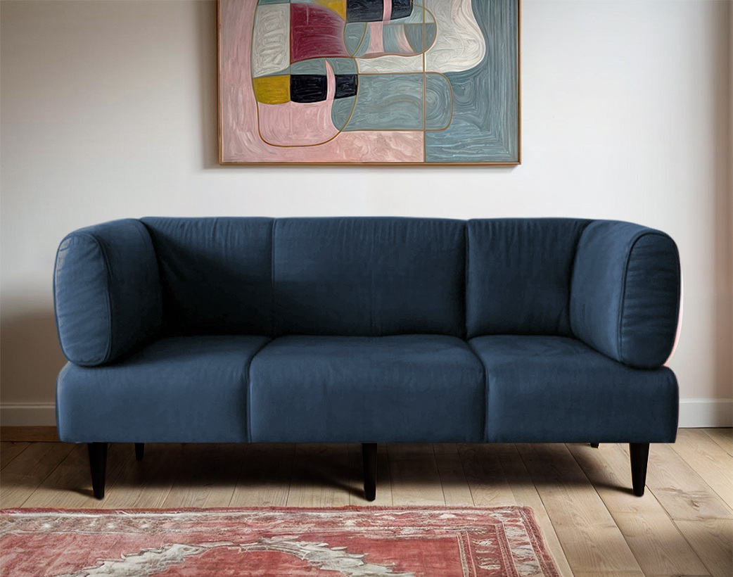 Диван с подлокотниками Tobi Sho Бенно-1 офисный с конусной ногой 1800х720х750 велюр Emilia 88 BLUE