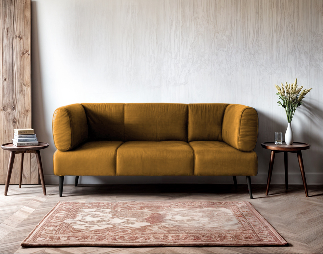 Диван із підлокітниками Tobi Sho Бенно-1 офісний з конусною ногою 1800х720х750 велюр Emilia 48 GOLD