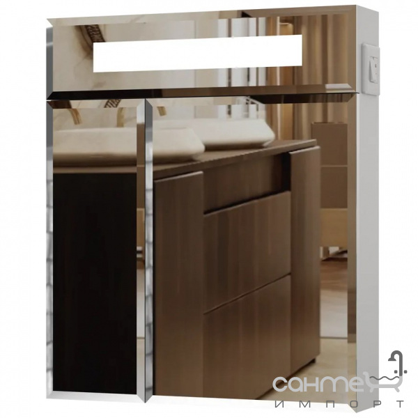 Опис Зеркальный шкафчик с подсветкой Mirater Смайл 60 белый, левый
