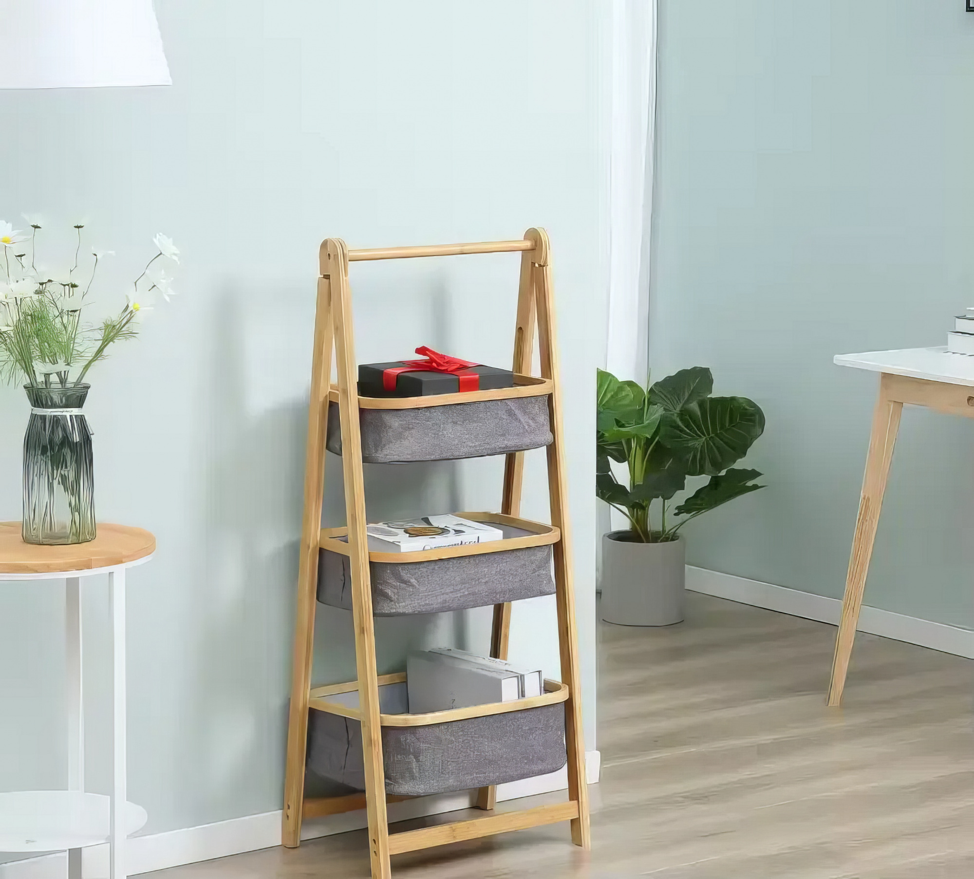 Складная полка для одежды из бамбука с тканевыми корзинами на три уровня – стильное и практичное решение для вашего дома. Полка идеально подходит для хранения одежды, аксессуаров или мелочей в спальне, ванной комнате или офисе. Размеры полки составляют 44×35×99 см, что делает ее компактной, но вместительной. Бамбуковая основа гарантирует прочность и устойчивость, а тканевые корзины добавляют эстетичности и практичности. Полка легко складывается, что упрощает ее хранение или перемещение. Это универсальное решение для аккуратной организации вещей и поддержания порядка в интерьере.