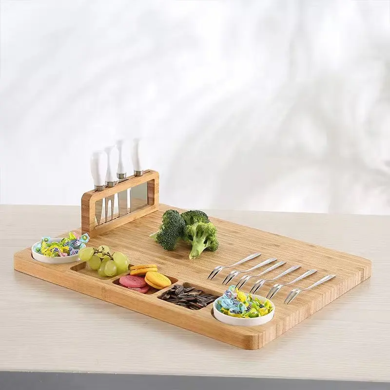 Бамбуковая доска для закусок и сыра с набором ножей и вилок, доска из бамбука, размер 43х33х2см