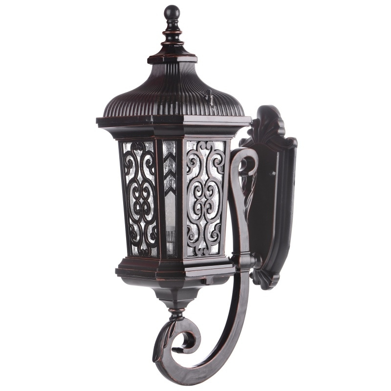 Светильник уличный настенный фасадный накладной GL-55 A, выполненный из материала Металл в цвете Коричневый. Дизайн оформления — в актуальном стиле Классический. В качестве источника света используется лампочка с цоколем E27 и мощностью 60W.
