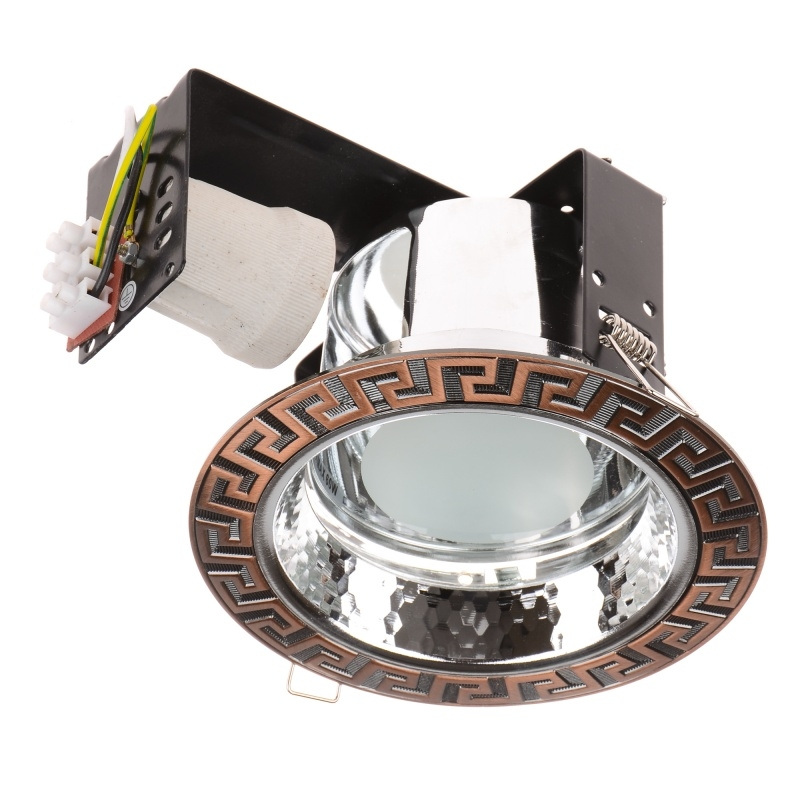 Светильник потолочный встроенный DL-26/1 AC E27, выполненный из материала Металл в цвете Медь. Дизайн оформления — в актуальном стиле Классический. В качестве источника света используется лампочка с цоколем E27 и мощностью 60W.